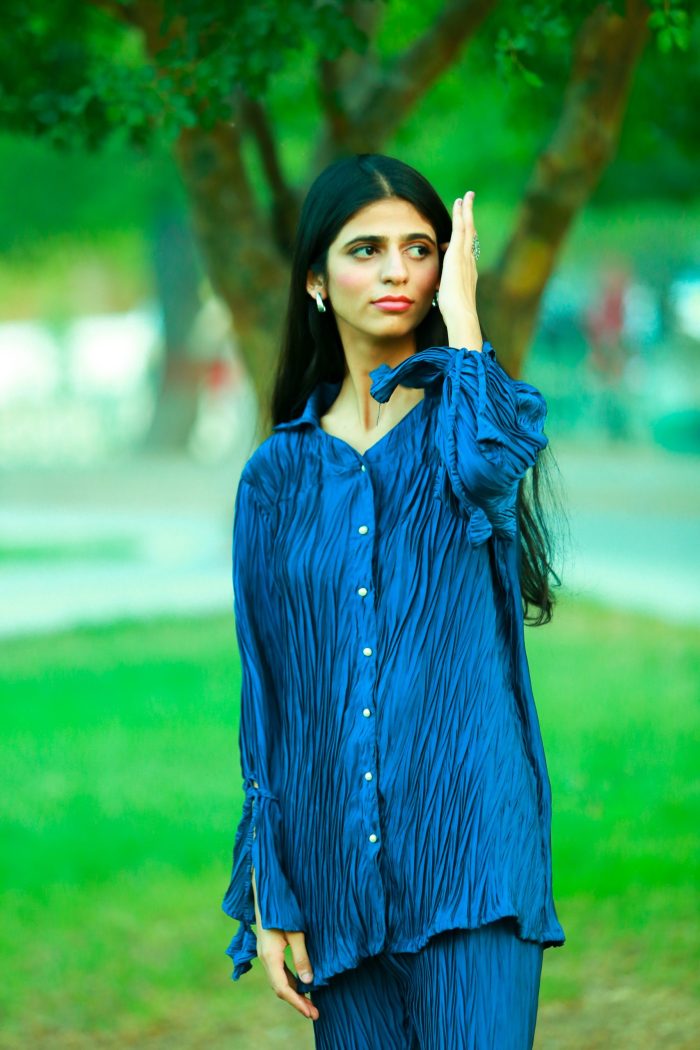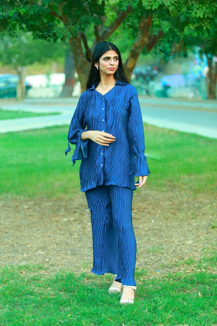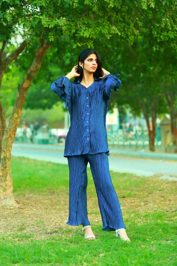The Becky Pleated Co Ord Set in Blue is a trendy and sassy outfit designed for your stylish wardrobe, perfect for any occasion.